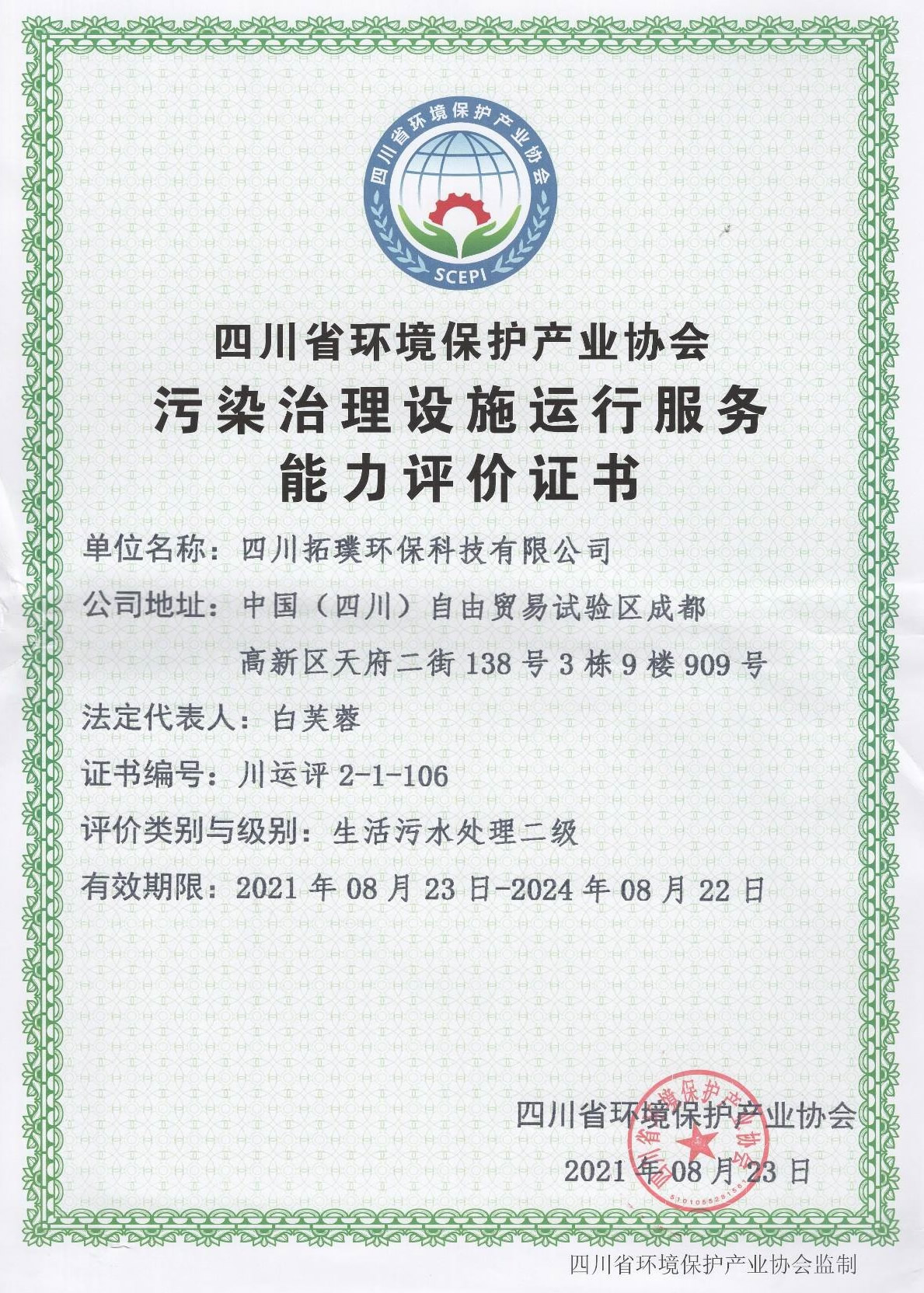 污染治理設(shè)施運行服務(wù)能力評價證書