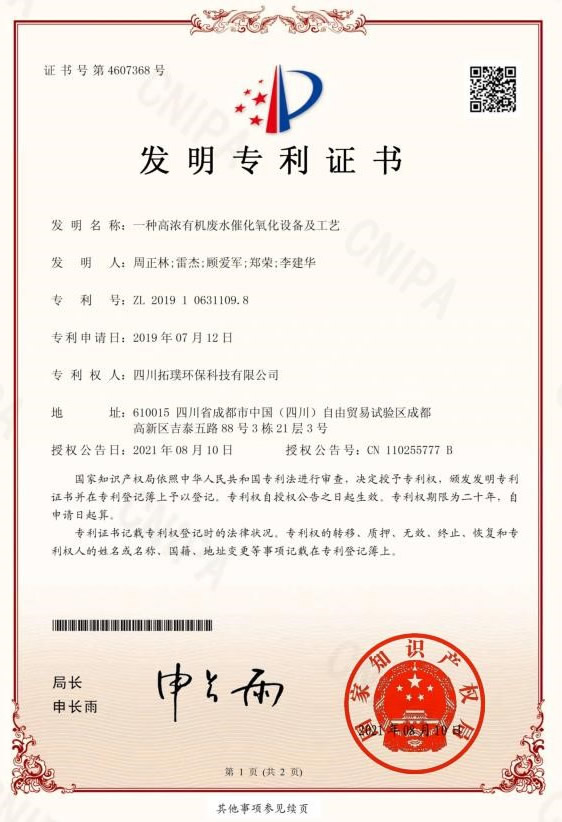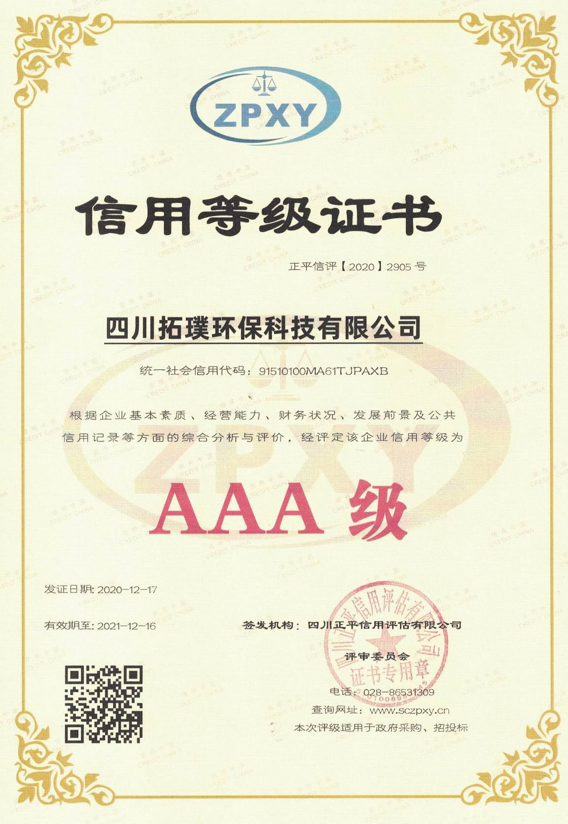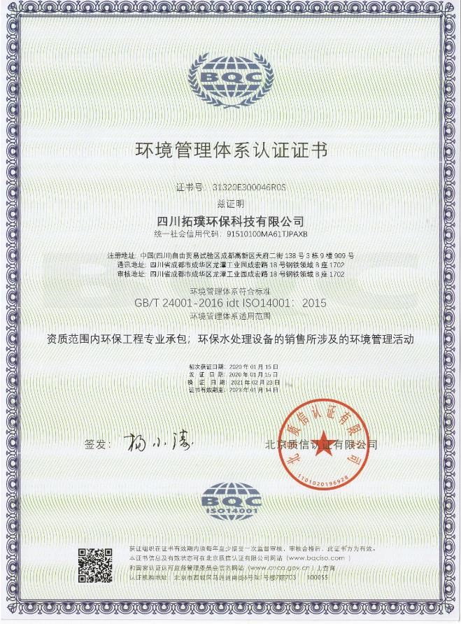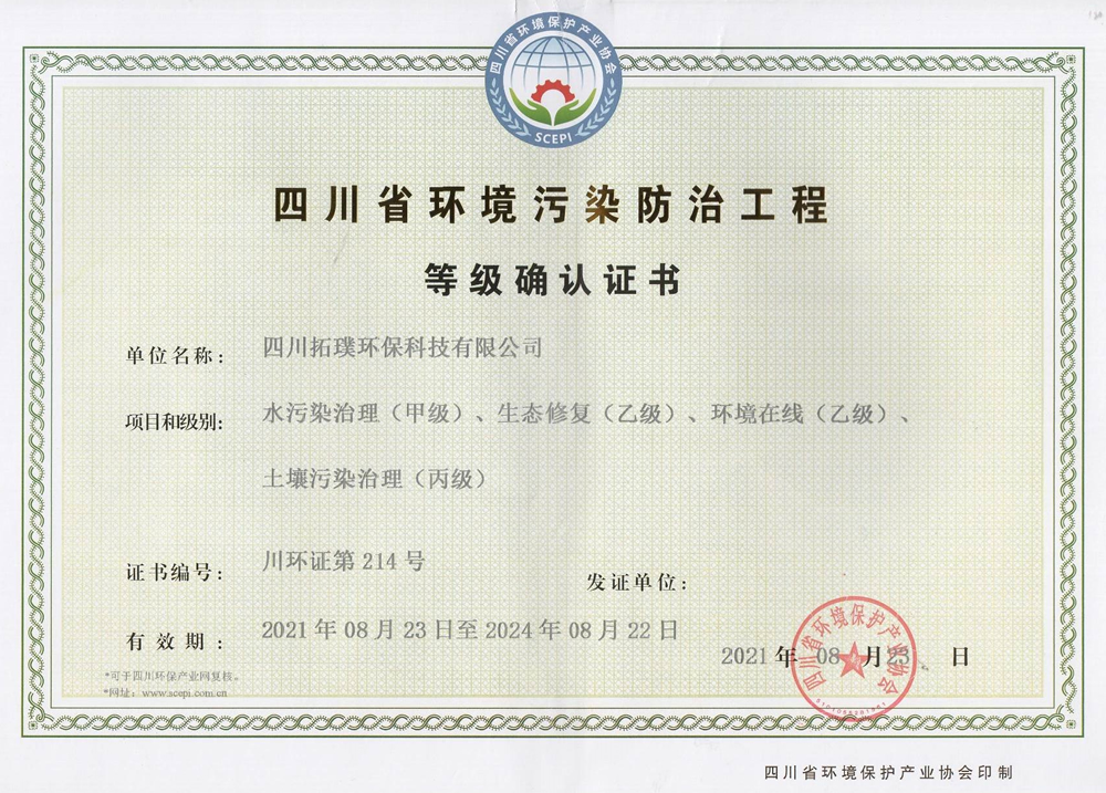 四川省環(huán)境污染防治工程等級確認證書