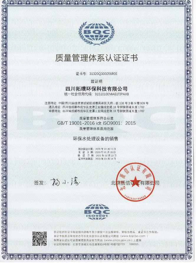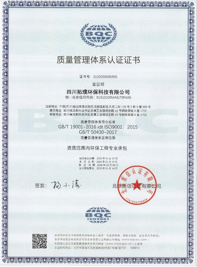 質(zhì)量管理體系認證證書